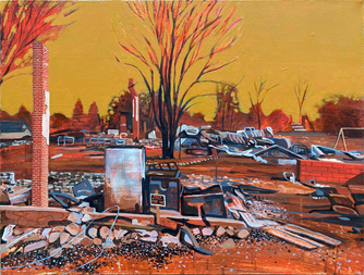“Malden 1: After the Inferno,” acrylic on canvas, 20” x 26”
