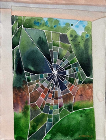 “Shattered Web,” watercolor on canvas, 12” x 9”