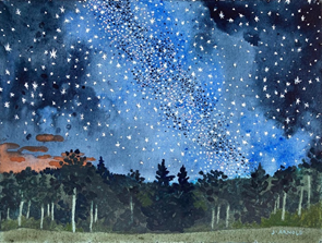 “Milky Way,” watercolor and gouache, 9” x 12”